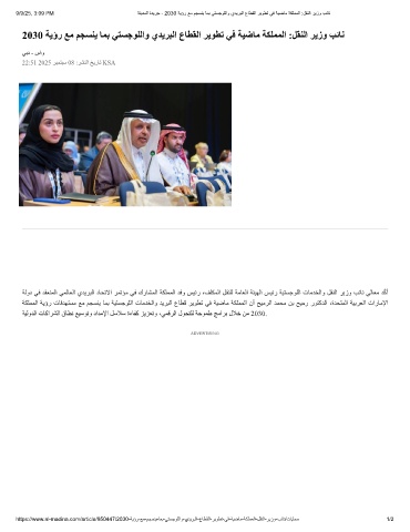 9/9/25, 3:09 PM ﺔﻧﯾدﻣﻟا ةدﯾرﺟ - 2030 ﺔﯾؤر ﻊﻣ مﺟﺳﻧﯾ ﺎﻣﺑ ﻲﺗﺳﺟوﻠﻟاو يدﯾرﺑﻟا عﺎطﻘﻟا رﯾوطﺗ ﻲﻓ ﺔﯾﺿﺎﻣ ﺔﻛﻠﻣﻣﻟا :لﻘﻧﻟا رﯾزو بﺋﺎﻧ