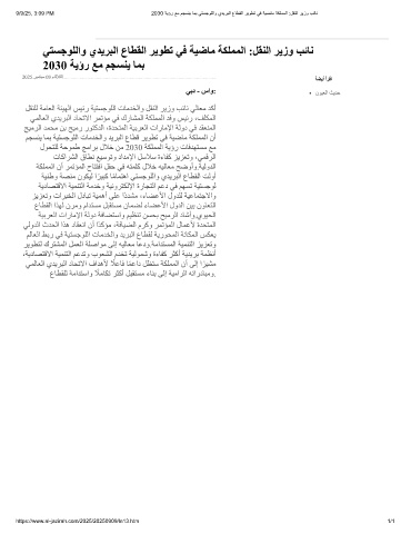 9/9/25, 3:09 PM 2030 ﺔﯾؤر ﻊﻣ مﺟﺳﻧﯾ ﺎﻣﺑ ﻲﺗﺳﺟوﻠﻟاو يدﯾرﺑﻟا عﺎطﻘﻟا رﯾوطﺗ ﻲﻓ ﺔﯾﺿﺎﻣ ﺔﻛﻠﻣﻣﻟا :لﻘﻧﻟا رﯾزو بﺋﺎﻧ