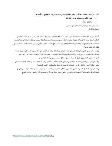 2030 ةيؤر عم مجسني امب يتسجوللاو يديربلا عاطقلا ريوطت يف ةيضام ةكلمملا :لقنلا ريزو بئان