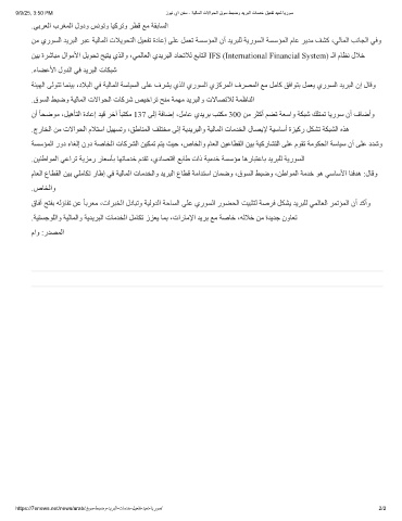 ﻦﻣ يرﻮﺴﻟا ﺪﯾﺮﺒﻟا ﺮﺒﻋ ﺔﯿﻟﺎﻤﻟا تﻼﯾﻮﺤﺘﻟا ﻞﯿﻌﻔﺗ ةدﺎﻋإ ﻰﻠﻋ ﻞﻤﻌﺗ ﺔﺴﺳﺆﻤﻟا نأ ﺪﯾﺮﺒﻠﻟ ﺔﯾرﻮﺴﻟا ﺔﺴﺳﺆﻤﻟا مﺎﻋ ﺮﯾﺪﻣ ﻒﺸﻛ ،ﻲﻟﺎﻤﻟا ﺐﻧﺎﺠﻟا ﻲﻓو