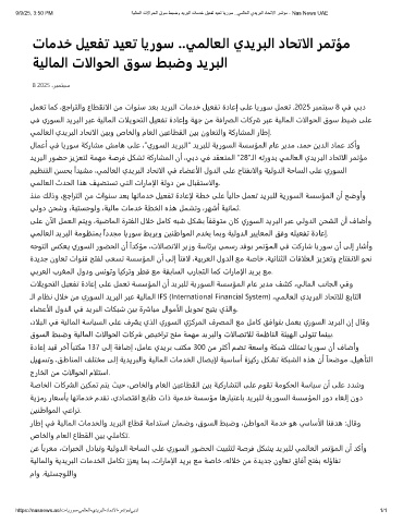 9/9/25, 3:50 PM ﺔﯾﻟﺎﻣﻟا تﻻاوﺣﻟا قوﺳ طﺑﺿو دﯾرﺑﻟا تﺎﻣدﺧ لﯾﻌﻔﺗ دﯾﻌﺗ ﺎﯾروﺳ ..ﻲﻣﻟﺎﻌﻟا يدﯾرﺑﻟا دﺎﺣﺗﻻا رﻣﺗؤﻣ - Nas News UAE