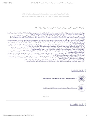 9/9/25, 3:51 PM ﺔﯾﻟﺎﻣﻟا تﻻاوﺣﻟا قوﺳ طﺑﺿو دﯾرﺑﻟا تﺎﻣدﺧ لﯾﻌﻔﺗ دﯾﻌﺗ ﺎﯾروﺳ ..ﻲﻣﻟﺎﻌﻟا يدﯾرﺑﻟا دﺎﺣﺗﻻا رﻣﺗؤﻣ - Fana News