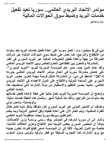 ،"يرﻮﺴﻟا ﺪﯾﺮﺒﻟا" ﺪﯾﺮﺒﻠﻟ ﺔﯾرﻮﺴﻟا ﺔﺴﺳﺆﻤﻟا مﺎﻋ ﺮﯾﺪﻣ ،ﺪﻤﺣ ﻦﯾﺪﻟا دﺎﻤﻋ ﺪﻛأو
