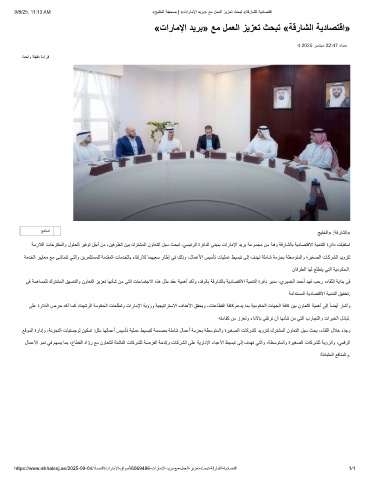 9/8/25, 11:13 AM «ﺞﯾﻠﺧﻟا ﺔﻔﯾﺣﺻ | «تارﺎﻣﻹا دﯾرﺑ» ﻊﻣ لﻣﻌﻟا زﯾزﻌﺗ ثﺣﺑﺗ «ﺔﻗرﺎﺷﻟا ﺔﯾدﺎﺻﺗﻗا