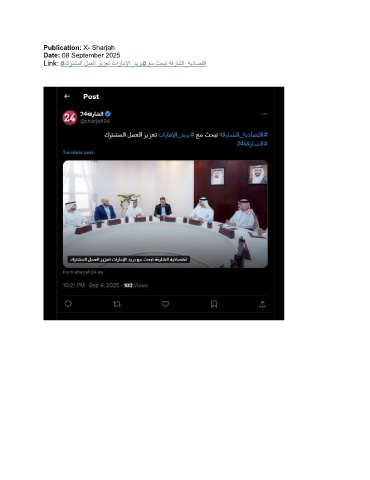 Publication: X- Sharjah Date: 08 September 2025 Link: #كرتشملا لمعلا زيزعت تاراملإا_ديرب# عم ثحبت ةقراشلا_ةيداصتقا