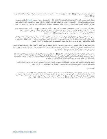 15 نم اهعيمج( ةيراجتلا عينصتلا ضراعم نم ةعساو ةعومجم رهشلا فصتنم دهشيو .)ربمتبس 18 - 12 ( جيلخلا سورع ضرعمو ،)ربمتبس