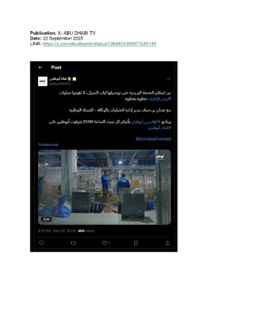Publication: X- ABU DHABI TV Date: 22 September 2025 LINK: https://x.com/abudhabitv/status/1969454389971546146