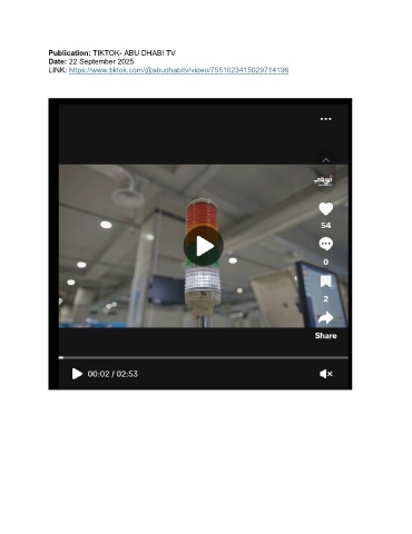 Publication: TIKTOK- ABU DHABI TV Date: 22 September 2025 LINK: https://www.tiktok.com/@abudhabitv/video/7551023415029714196