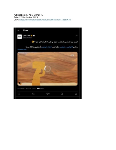 Publication: X- ABU DHABI TV Date: 22 September 2025 LINK: https://x.com/abudhabitv/status/1969461790116360635
