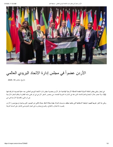 9/19/25, 11:53 AM رﻘﻣﻟا ﺔﻔﯾﺣﺻ - ﻲﻣﻟﺎﻌﻟا يدﯾرﺑﻟا دﺎﺣﺗﻻا ةرادإ سﻠﺟﻣ ﻲﻓ ًاوﺿﻋ ندرﻷا