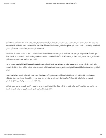 ،ﺔﯾﻟﺎﻣﻟا ،ﺔﯾدﯾرﺑﻟا تﺎﻣدﺧﻟا تﻻﺎﺟﻣ ﻲﻓ ﺎﻣﯾﺳﻻ ،رﯾوطﺗﻟاو ثﯾدﺣﺗﻟا ﺔﻠﺻاوﻣﻟ ﺔﯾﻓﺎﺿإ تﺎﯾﻟوؤﺳﻣ ﻲﻧدرﻷا دﯾرﺑﻟا ﻖﺗﺎﻋ ﻰﻠﻋ ﻊﺿﯾ ﻲﺧﯾرﺎﺗﻟا حﺎﺟﻧﻟا اذھ نأ دووادﻟا ﺢﺿوأو