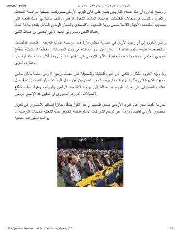 ﺚﯾﺪﺤﺘﻟا ﺔﻠﺻاﻮﻤﻟ ﺔﯿﻓﺎﺿإ تﺎﯿﻟوﺆﺴﻣ ﻲﻧدرﻷا ﺪﯾﺮﺒﻟا ﻖﺗﺎﻋ ﻰﻠﻋ ﻊﻀﯾ ﻲﺨﯾرﺎﺘﻟا حﺎﺠﻨﻟا اﺬھ نأ دوواﺪﻟا ﺢﺿوأو