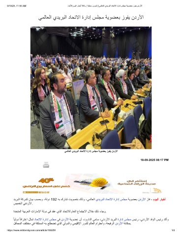 9/19/25, 11:56 AM ءﺎﺑﻧﻸﻟ موﯾﻟا رﺎﺑﺧأ ﺔﻟﺎﻛو | ﺔﯾﻠﺣﻣ نوؤﺷ | ﻲﻣﻟﺎﻌﻟا يدﯾرﺑﻟا دﺎﺣﺗﻻا ةرادإ سﻠﺟﻣ ﺔﯾوﺿﻌﺑ زوﻔﯾ ندرﻷا
