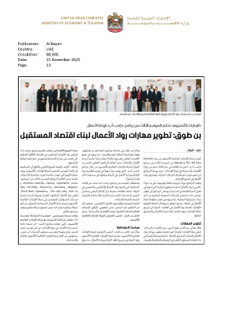 Publication: Al Bayan Country: UAE Circulation: 88,000 Date: 15 November 2025 Page: 13