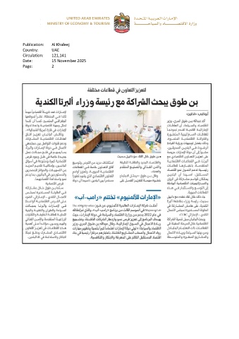 Publication: Al Khaleej Country: UAE Circulation: 121,141 Date: 15 November 2025 Page: 2