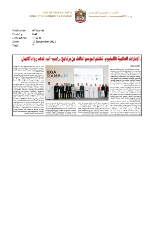 Publication: Al Wahda Country: UAE Circulation: 19,400 Date: 15 November 2025 Page: 7