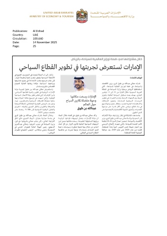 Publication: Al Etihad Country: UAE Circulation: 109,640 Date: 14 November 2025 Page: 25