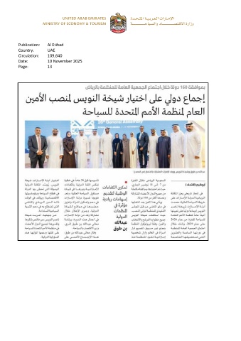 Publication: Al Etihad Country: UAE Circulation: 109,640 Date: 10 November 2025 Page: 13