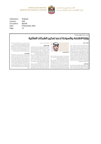 Publication: Al Bayan Country: UAE Circulation: 88,000 Date: 9 November 2025 Page: 12