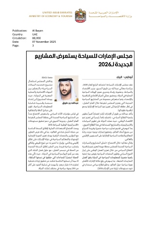 Publication: Al Bayan Country: UAE Circulation: 88,000 Date: 07 November 2025 Page: 3