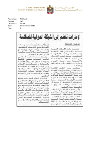 Publication: Al Wahda Country: UAE Circulation: 19,400 Date: 07 November 2025 Page: 6