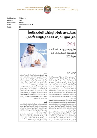 Publication: Al Bayan Country: UAE Circulation: 88,000 Date: 06 November 2025 Page: 17
