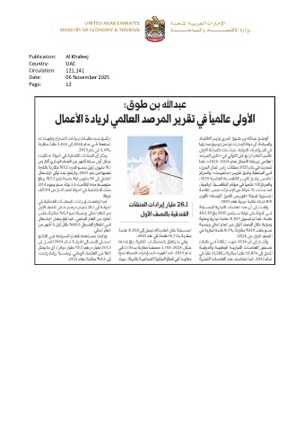 Publication: Al Khaleej Country: UAE Circulation: 121,141 Date: 06 November 2025 Page: 12