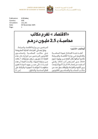 Publication: Al Khaleej Country: UAE Circulation: 121,141 Date: 06 November 2025 Page: 1