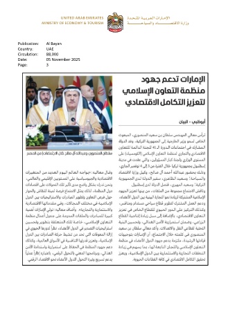 Publication: Al Bayan Country: UAE Circulation: 88,000 Date: 05 November 2025 Page: 3
