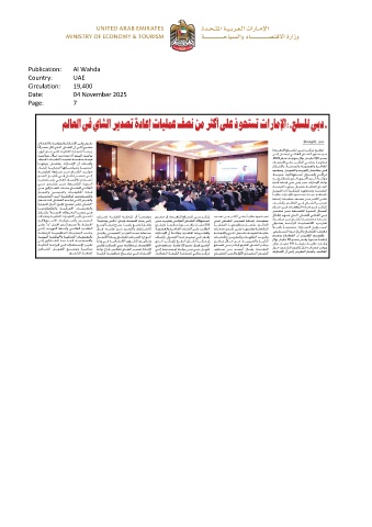 Publication: Al Wahda Country: UAE Circulation: 19,400 Date: 04 November 2025 Page: 7