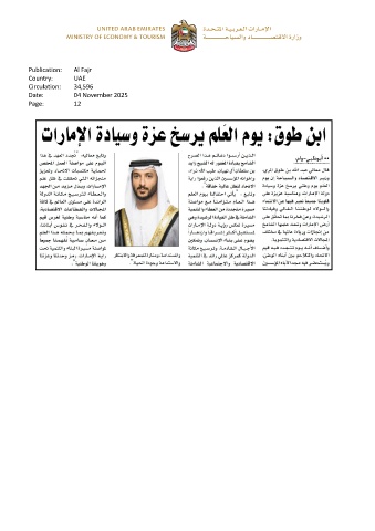 Publication: Al Fajr Country: UAE Circulation: 34,596 Date: 04 November 2025 Page: 12