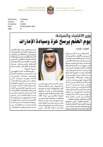 Publication: Al Wahda Country: UAE Circulation: 19,400 Date: 03 November 2025 Page: 8