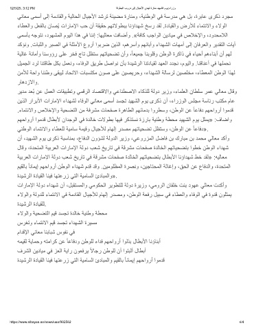 نﯾذﻟا رارﺑﻷا تارﺎﻣﻹا ءادﮭﺷﻟ ءﺎﻓوﻟا ﻲﻧﺎﻌﻣ ﻰﻣﺳأ دﺳﺟﺗ دﯾﮭﺷﻟا موﯾ ىرﻛذ نأ ،ءارزوﻟا سﻠﺟﻣ ﺔﺳﺎﺋر بﺗﻛﻣ مﺎﻋ