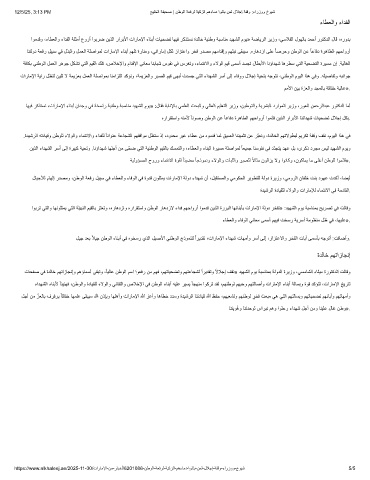 ﺎﮭﯾﻓ رﻛذﺗﺳﻧ ،تارﺎﻣﻹا ءﺎﻧﺑأ نادﺟو ﻲﻓ ﺔﺧﺳار ﺔﯾﻧطو ﺔﺑﺳﺎﻧﻣ دﯾﮭﺷﻟا موﯾ» :لﺎﻘﻓ ﺔﺑﺎﻧﻹﺎﺑ ﻲﻣﻠﻌﻟا ثﺣﺑﻟاو ﻲﻟﺎﻌﻟا مﯾﻠﻌﺗﻟا رﯾزو ،نﯾطوﺗﻟاو ﺔﯾرﺷﺑﻟا دراوﻣﻟا رﯾزو ،روﻌﻟا نﻣﺣرﻟادﺑﻋ روﺗﻛدﻟا ﺎﻣأ