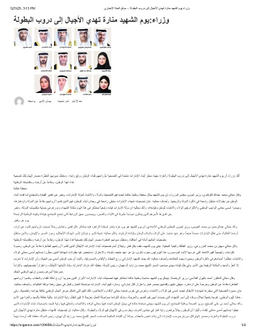 ً ﺎﻧوﺻو ،نطوﻟا نﻋ ً ﺎﻋﺎﻓد ةرھﺎطﻟا مﮭﺣاورأ اوﻣّدﻗ نﯾذﻟا لﺎطﺑﻷا تارﺎﻣﻹا ءﺎﻧﺑأ تﺎﯾﺣﺿﺗ مﺎﻣأ لﻼﺟإو ٍ رﺧﻓ لﻛﺑ فﻘﻧ ،دﯾﮭﺷﻟا موﯾ ﻲﻓ» :ﺔﯾﺗﺣﺗﻟا ﺔﯾﻧﺑﻟاو ﺔﻗﺎطﻟا رﯾزو ،ﻲﻋورزﻣﻟا دﻣﺣﻣ نﺑ لﯾﮭﺳ ﻲﻟﺎﻌﻣ لﺎﻗو