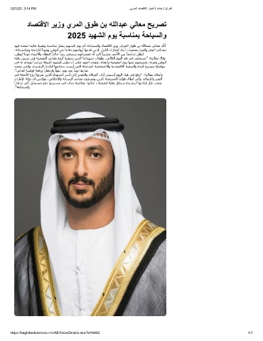 ﺎﮫﯿﻓ دﺪﺠﺘﺗ ﺔﯿﻟﺎﻏ ﺔﯿﻨطو ﺔﺒﺳﺎﻨﻣ ﻞﺜﻤﻳ ﺪﯿﮫﺸﻟا مﻮﻳ نأ ،ﺔﺣﺎﯿﺴﻟاو دﺎﺼﺘﻗﻻا ﺮﻳزو ،يﺮﻤﻟا قﻮط ﻦﺑ ﷲﺪﺒﻋ ﻲﻟﺎﻌﻣ ﺪﻛأ