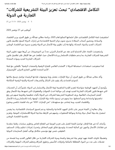 12/5/25, 8:00 AM "ﺔﻟودﻟا ﻲﻓ ﺔﯾرﺎﺟﺗﻟا تﺎﻛرﺷﻠﻟ ﺔﯾﻌﯾرﺷﺗﻟا ﺔﺋﯾﺑﻟا زﯾزﻌﺗ ثﺣﺑﺗ "يدﺎﺻﺗﻗﻻا لﻣﺎﻛﺗﻟا - Nas News UAE