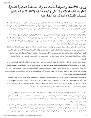 ةدﺣﺗﻣﻟا ﺔﯾﺑرﻌﻟا تارﺎﻣﻹا ﺔﻟود ﻰﻟإ ﺔﯾﻣﺳر ةرﺎﯾز ﻲﻓ (وﺑﯾوﻟا) ﺔﯾرﻛﻔﻟا ﺔﯾﻛﻠﻣﻠﻟ ﺔﯾﻣﻟﺎﻌﻟا ﺔﻣظﻧﻣﻟا ءارﺑﺧ نﻣ ًادﻓو ﺔﺣﺎﯾﺳﻟاو دﺎﺻﺗﻗﻻا ةرازو تﻠﺑﻘﺗﺳا