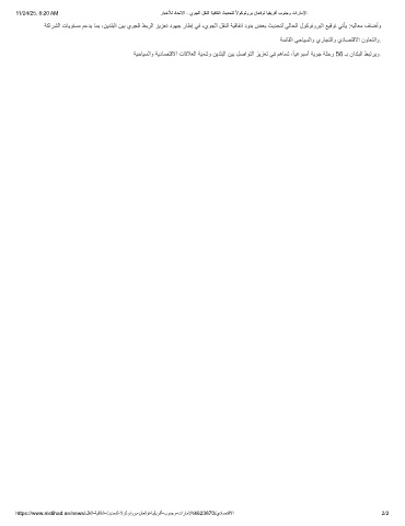 https://www.aletihad.ae/news/لﻘﻧﻟا-ﺔﯾﻗﺎﻔﺗا-ثﯾدﺣﺗﻟ-ﻻوﻛوﺗورﺑ-نﺎﻌﻗوﺗ-ﺎﯾﻘﯾرﻓأ-بوﻧﺟو-تارﺎﻣﻹا/4623870/يدﺎﺻﺗﻗﻻا 2/2