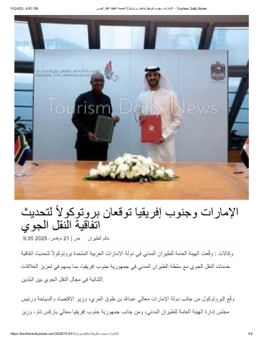 11/24/25, 4:05 PM يوﺟﻟا لﻘﻧﻟا ﺔﯾﻗﺎﻔﺗا ثﯾدﺣﺗﻟ ًﻻوﻛوﺗورﺑ نﺎﻌﻗوﺗ ﺎﯾﻘﯾرﻓإ بوﻧﺟو تارﺎﻣﻹا – Tourism Daily News
