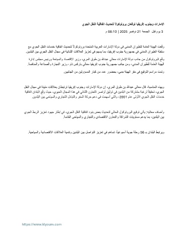 لقنلا لاجم يف ةنيتم تاقلاعب ناطبترت ايقيرفإ بونجو تاراملإا ةلود نإ ،يرملا قوط نب اللهدبع يلاعم لاق ،ةبسانملا هذهبو