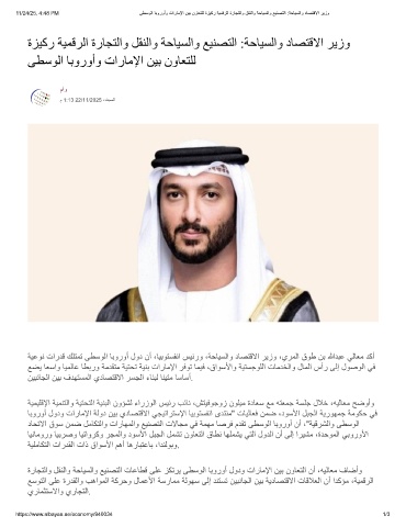 11/24/25, 4:48 PM ﻰطﺳوﻟا ﺎﺑوروأو تارﺎﻣﻹا نﯾﺑ نوﺎﻌﺗﻠﻟ ةزﯾﻛر ﺔﯾﻣﻗرﻟا ةرﺎﺟﺗﻟاو لﻘﻧﻟاو ﺔﺣﺎﯾﺳﻟاو ﻊﯾﻧﺻﺗﻟا :ﺔﺣﺎﯾﺳﻟاو دﺎﺻﺗﻗﻻا رﯾزو