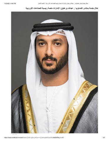 11/24/25, 4:48 PM رﺎﺑﺧﻸﻟ دﺎﺣﺗﻻا - ﺔﯾﺑوروﻷا تﺎﻋﺎﻧﺻﻠﻟ ﺔﯾﺳﯾﺋر ﺔﺻﻧﻣ تارﺎﻣﻹا :قوط نﺑ ﷲدﺑﻋ .. ﺎﯾﺑوﺗﺳﻔﻧا ىدﺗﻧﻣﺑ ﺔﺳﻠﺟ لﻼﺧ