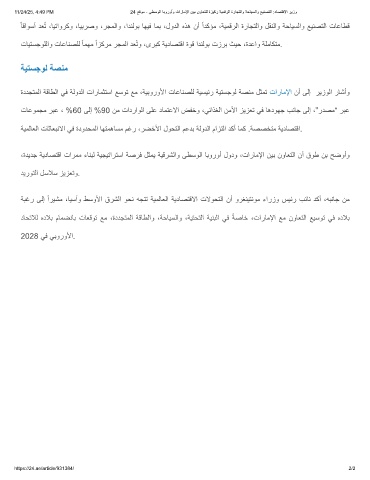 ةددﺟﺗﻣﻟا ﺔﻗﺎطﻟا ﻲﻓ ﺔﻟودﻟا تارﺎﻣﺛﺗﺳا ﻊﺳوﺗ ﻊﻣ ،ﺔﯾﺑوروﻷا تﺎﻋﺎﻧﺻﻠﻟ ﺔﯾﺳﯾﺋر ﺔﯾﺗﺳﺟوﻟ ﺔﺻﻧﻣ لﺛﻣﺗ تارﺎﻣﻹا نأ ﻰﻟإ رﯾزوﻟا رﺎﺷأو