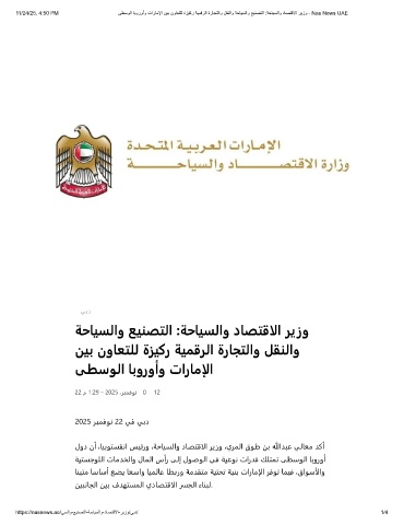 11/24/25, 4:50 PM ﻰطﺳوﻟا ﺎﺑوروأو تارﺎﻣﻹا نﯾﺑ نوﺎﻌﺗﻠﻟ ةزﯾﻛر ﺔﯾﻣﻗرﻟا ةرﺎﺟﺗﻟاو لﻘﻧﻟاو ﺔﺣﺎﯾﺳﻟاو ﻊﯾﻧﺻﺗﻟا :ﺔﺣﺎﯾﺳﻟاو دﺎﺻﺗﻗﻻا رﯾزو - Nas News UAE