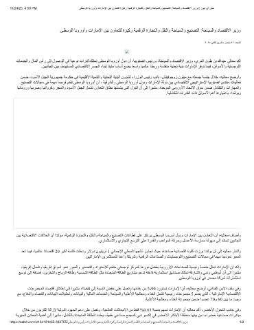 11/24/25, 4:50 PM ﻰطﺳوﻟا ﺎﺑوروأو تارﺎﻣﻹا نﯾﺑ نوﺎﻌﺗﻠﻟ ةزﯾﻛر ﺔﯾﻣﻗرﻟا ةرﺎﺟﺗﻟاو لﻘﻧﻟاو ﺔﺣﺎﯾﺳﻟاو ﻊﯾﻧﺻﺗﻟا :ﺔﺣﺎﯾﺳﻟاو دﺎﺻﺗﻗﻻا رﯾزو | زوﯾﻧ يا نﻔﺳ