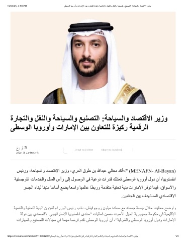 https://menafn.com/arabic/1110382291/ﻰطﺳوﻟا-ﺎﺑوروأو-تارﺎﻣﻹا-نﯾﺑ-نوﺎﻌﺗﻠﻟ-ةزﯾﻛر-ﺔﯾﻣﻗرﻟا-ةرﺎﺟﺗﻟاو-لﻘﻧﻟاو-ﺔﺣﺎﯾﺳﻟاو-ﻊﯾﻧﺻﺗﻟا-ﺔﺣﺎﯾﺳﻟاو-دﺎﺻﺗﻗﻻا-رﯾزو 1/3