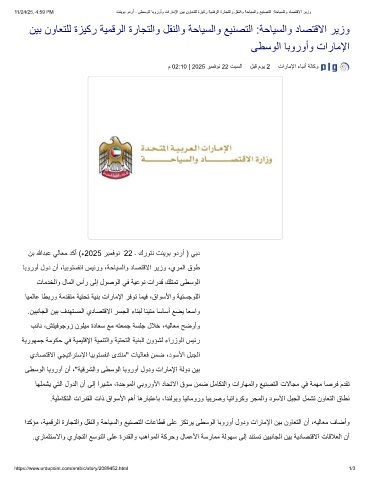 11/24/25, 4:59 PM تﻧﯾوﺑ ودرأ - ﻰطﺳوﻟا ﺎﺑوروأو تارﺎﻣﻹا نﯾﺑ نوﺎﻌﺗﻠﻟ ةزﯾﻛر ﺔﯾﻣﻗرﻟا ةرﺎﺟﺗﻟاو لﻘﻧﻟاو ﺔﺣﺎﯾﺳﻟاو ﻊﯾﻧﺻﺗﻟا :ﺔﺣﺎﯾﺳﻟاو دﺎﺻﺗﻗﻻا رﯾزو