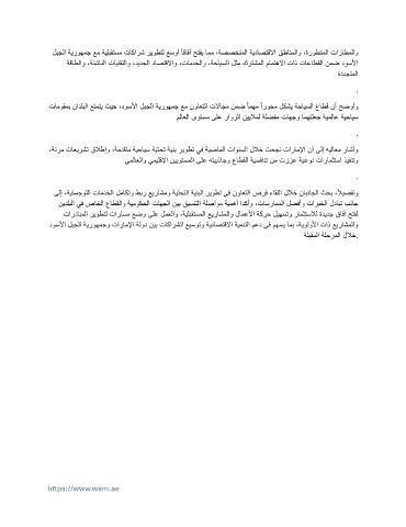 دوسلأا لبجلا ةيروهمجو تاراملإا ةلود نيب تاكارشلا عيسوتو ةيداصتقلاا ةيمنتلا معد يف مهسي امب ،ةيولولأا تاذ عيراشملاو
