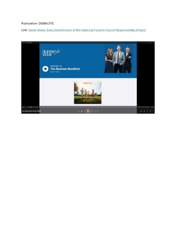 Publication: DUBAI EYE Link: Sarah Shaw, Executive Director of the National Fund for Social Responsibility (Majra)
